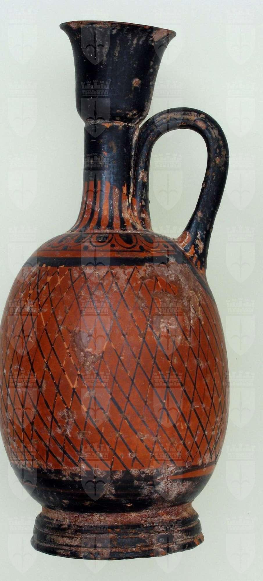 Lechythos apula a reticolato nero a punti bianchi e ovuli al collo.