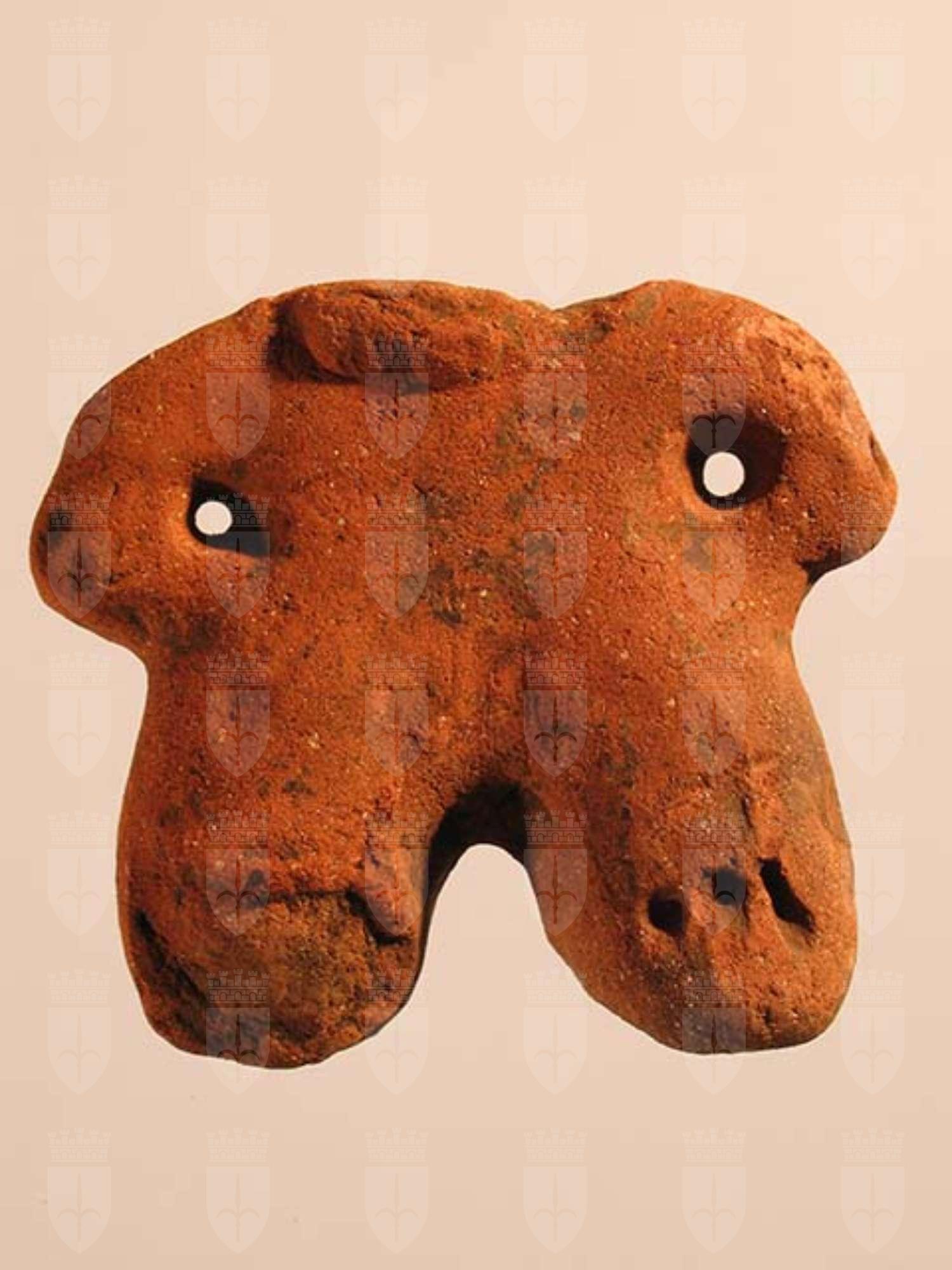 Rappresentazione schematica di stile Usulután di una figura umana in piedi, priva di testa. È stata modellata in pasta di argilla piena e ingobbiata. Le forme del corpo sono sproporzionate: le braccia piccole e corte sono separate dal busto da due fori; le gambe, anch’esse corte e tozze, si allargano verso il basso terminando con tre grossolane scanalature verticali che identificano i piedi. Intorno al collo restano due grani della collana. Sulla superficie si osservano tracce di bruciatura.