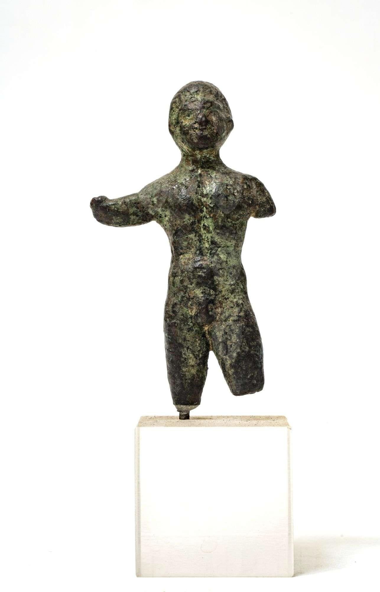 Statuina d'Ercole mutila di gambe, braccio sinistro e avambraccio destro, che doveva essere sollevato. Originariamente l'anatomia doveva essere resa con cura ed efficacia. Il capo è rotondo, con le orecchie leggermente in risalto.
