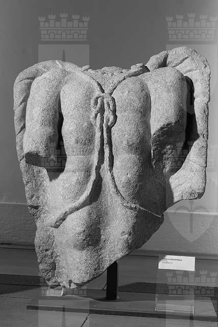 frammento della statua a tutto tondo del leontocefalo Aion-Cronos legato al culto mitraico. Restano il tronco e parte delle gambe (fino alla coscia sinistra e al polpaccio destro). Il corpo è attraversato da due serpenti che si annodano sul petto, in un nodo erculeo. Le teste dei serpenti sono appoggiate sulle spalle e affiancano una collana di perle a girocollo. La schiena è coperta da due ampie ali rese in modo naturalistico. Della testa felina, ora perduta, rimangono lunghe ciocche della criniera ricadenti sulle spalle.