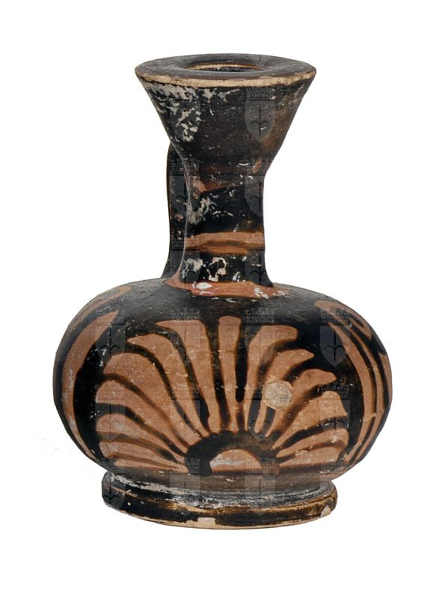 Lekythos attica a figure rosse con palmetta ad antefissa.