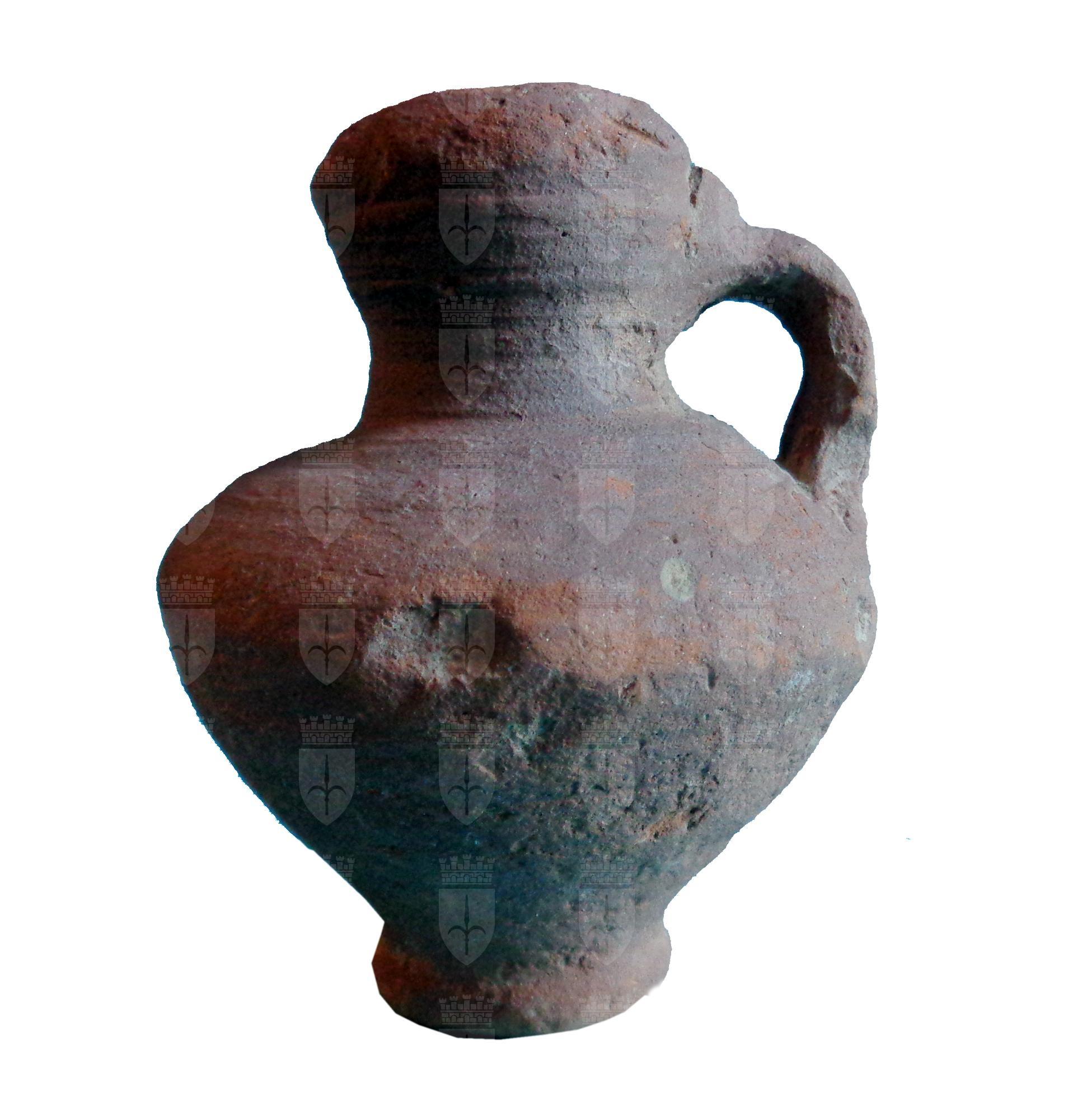 Olpe miniaturistica con piede leggermente allargato, corpo biconico e orlo leggermente proteso a formare un beccuccio.