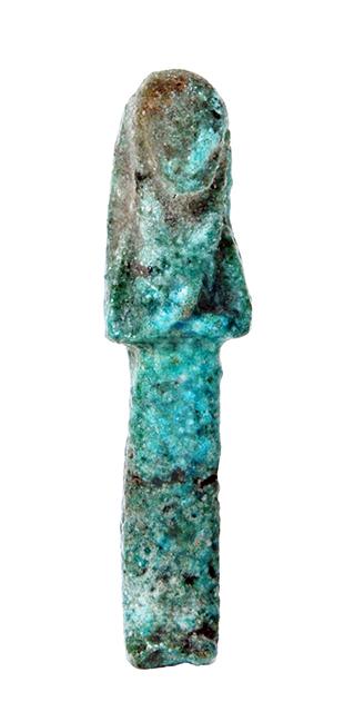 Statuina funeraria di dimensioni ridotte, per cui è possibile la funzione di amuleto. L'ushabti è mummiforme, con le braccia incrociate sul petto, la destra sulla sinistra. Le mani sono prive di attrezzi. La parrucca è tripartita, il retro è piatto e non è presente alcuna base sotto i piedi. Non sono presenti iscrizioni.