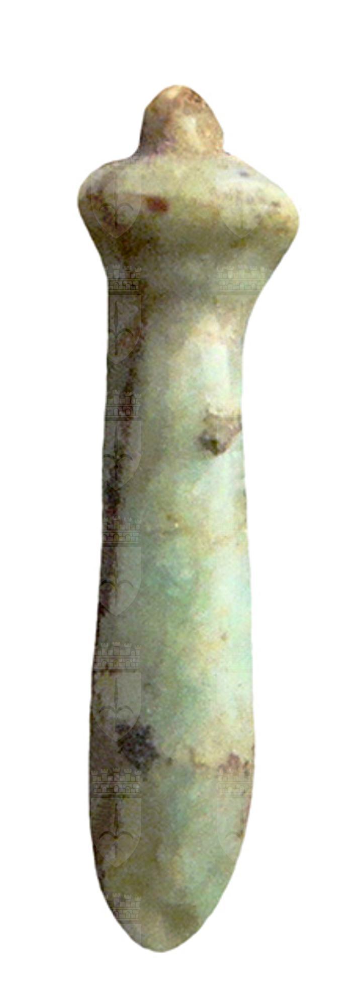 Amuleto in pietra lavorato a tutto tondo e raffigurante un giovane stelo cilindrico di papiro con la base appuntita e con in cima la sua tipica infiorescenza a ombrello; al di sopra vi è la consueta presa forata per la sospensione. Normalmente, lo stelo di papiro così raffigurato è tenuto in mano come scettro dalle divinità femminili. Di colore verde o azzurro chiaro, allude alla gioventù e alla rinascita della vegetazione, rinascita che i defunti speravano di sperimentare nell'aldilà.