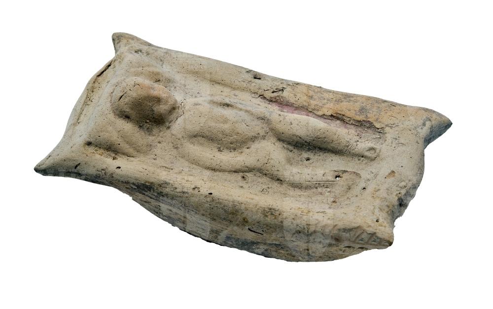 Figura cava in cui ruota un nucleo. Raffigura una culla a forma di mangiatoia in cui è adagiata la figura di un neonato nudo disteso sulla schiena, con la gamba destra leggermente flessa; la testa poggia su un cuscino. La parte superiore è realizzata a stampo mentre quella inferiore è modellata a mano e presenta un piccolo foro di sfiato. Rimangono residui di rivestimento bianco e di colore.