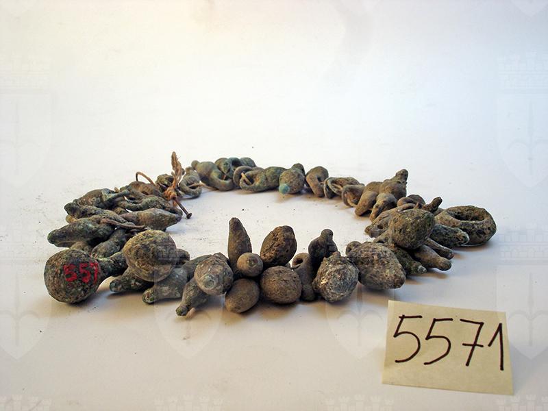 54 pesi per rete da pesca. Per lo più fusiformi, uno ad anello, altro a palla; tutti con appendice forata o con anello di sospensione.