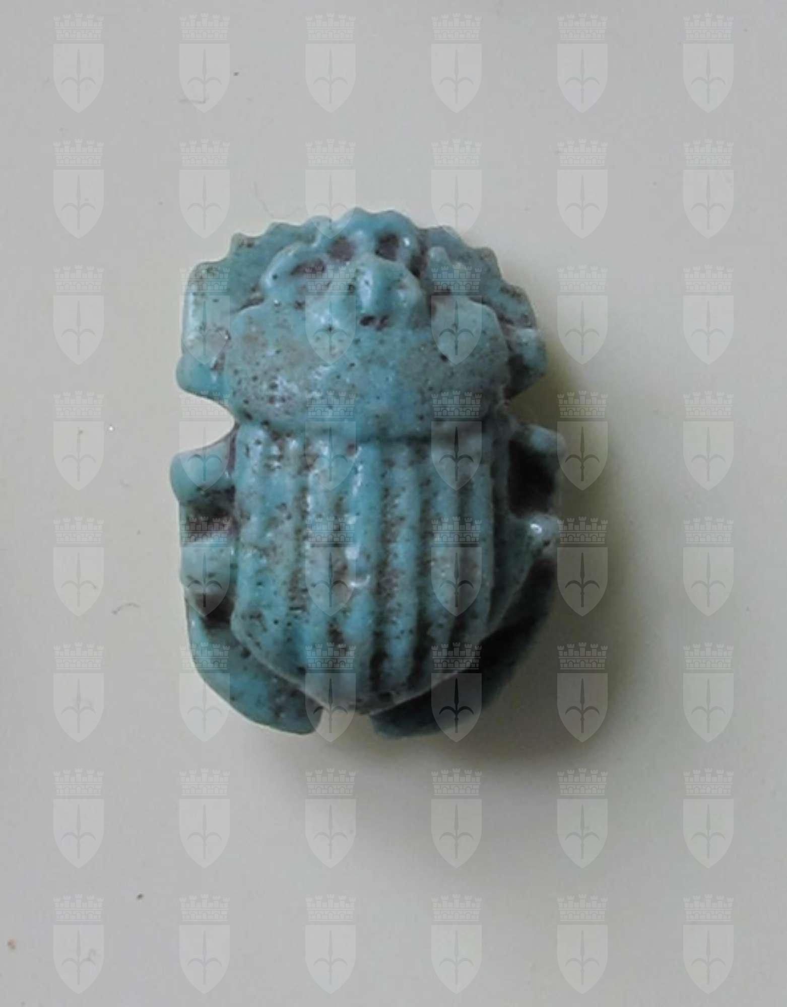 Scarabeo in faience, con raffigurazione animale, che presenta una minuziosa cura per i particolari naturalistici. Questo tipo di scarabei è tipico, anche se non esclusivo, della XXVI dinastia (672-525 a.C.).