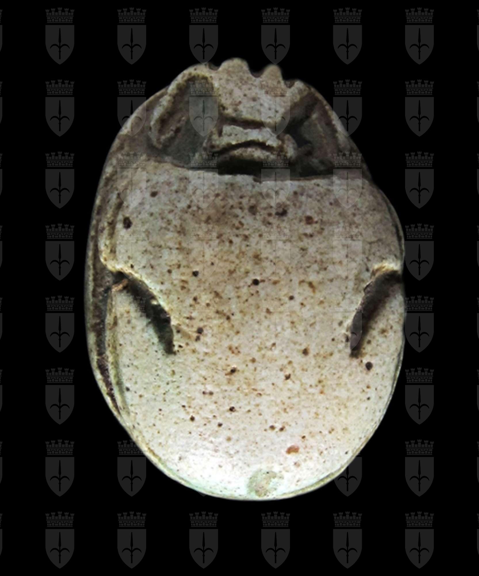 Il ventre reca l’immagine di due scorpioni. Dorso con clipeo e piccole tacche a V sul protorace. Conserva tracce dell’invetriatura nelle incisioni. Foro passante longitudinale.