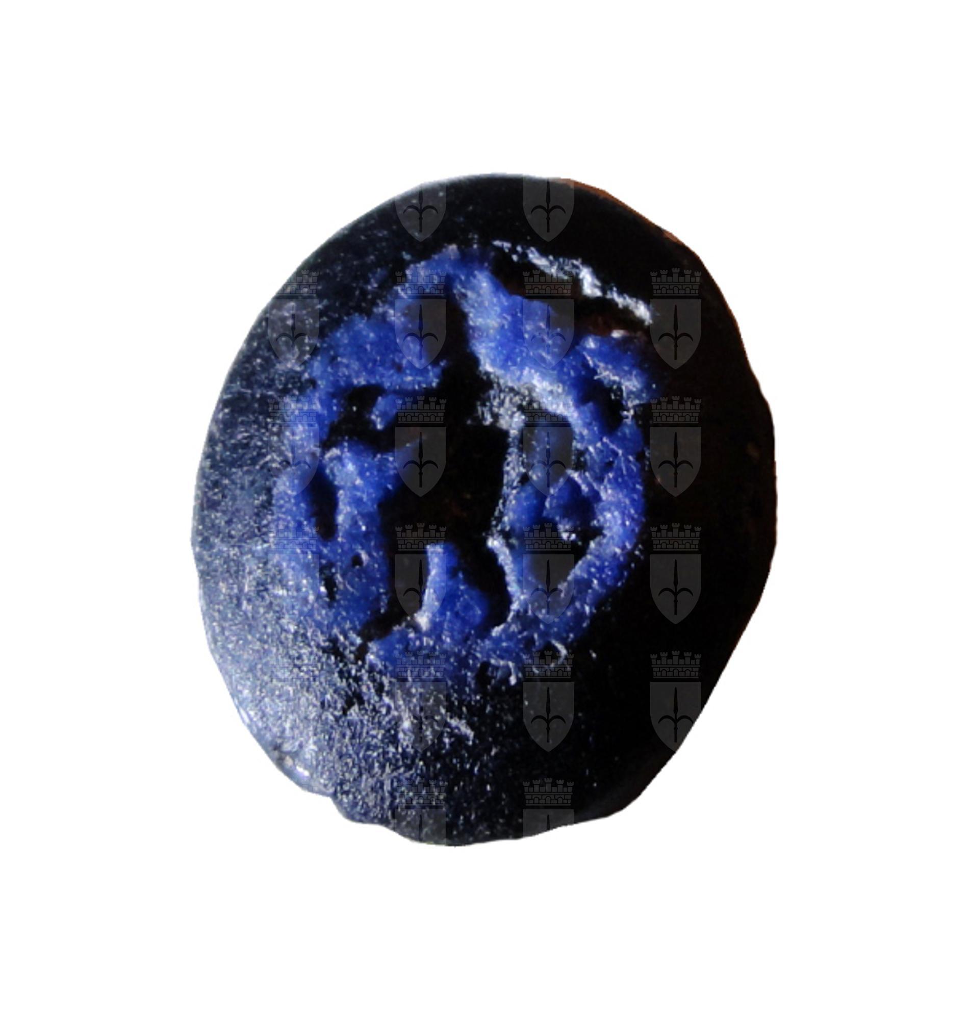 Gemma ovale piana con figura andante a destra e portante vari oggetti. Pescatore con pesci?