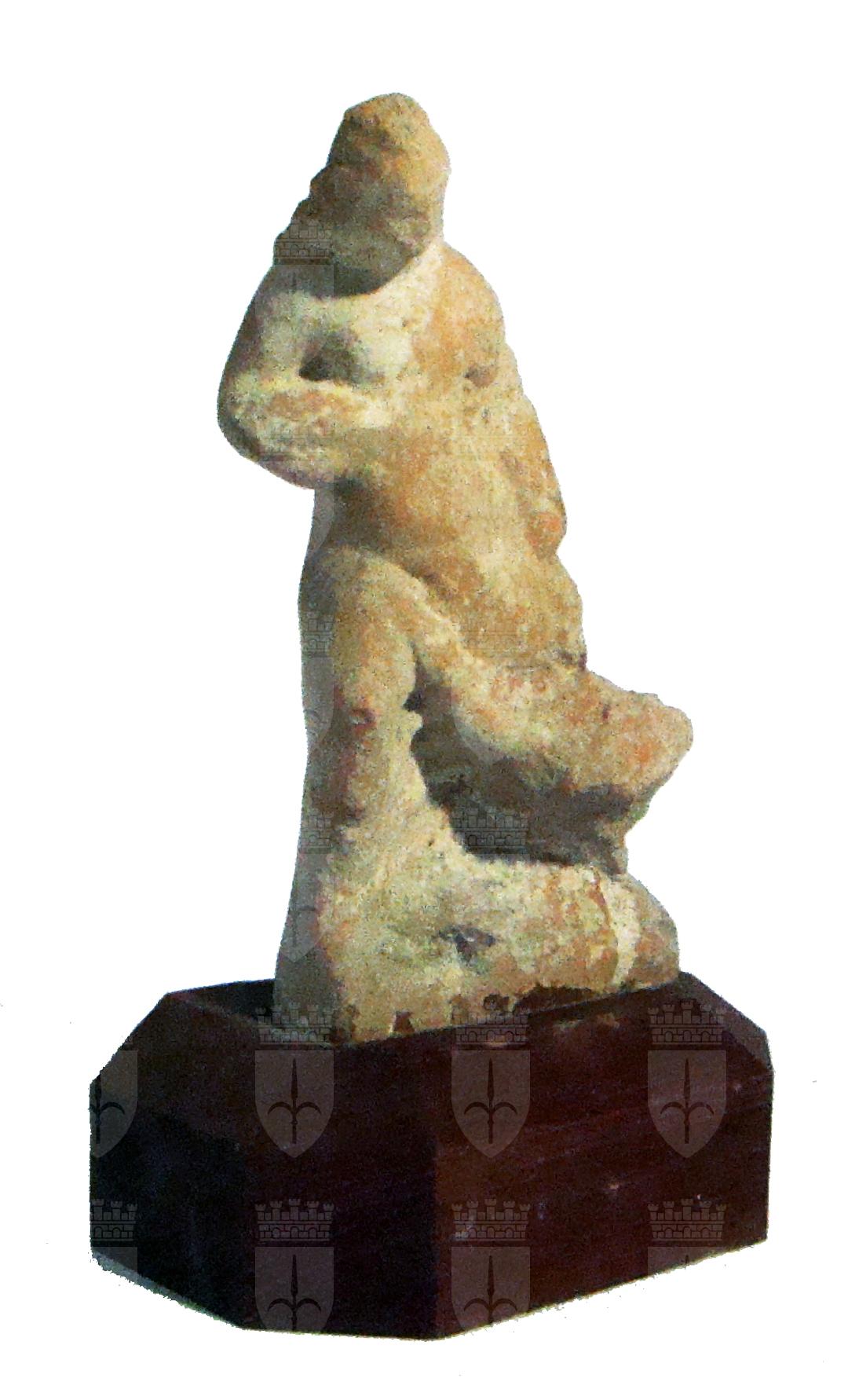 Statuina in terracotta, realizzata a matrice, alloggiata su una basetta lignea moderna. Retro non lavorato. Riporta sul retro l'etichetta "Cyme 2 marzo 1889"; sul dorso e sulla basetta lignea è presenta la scritta in rosso "5113". Figura apollinea dalle sembianze giovanili, nuda panneggiata sulle gambe, gradiente e con il peso sulla gamba destra. I capelli ricadono lungo le spalle, volto poco leggibile. Ai piedi è rappresentato un cigno.