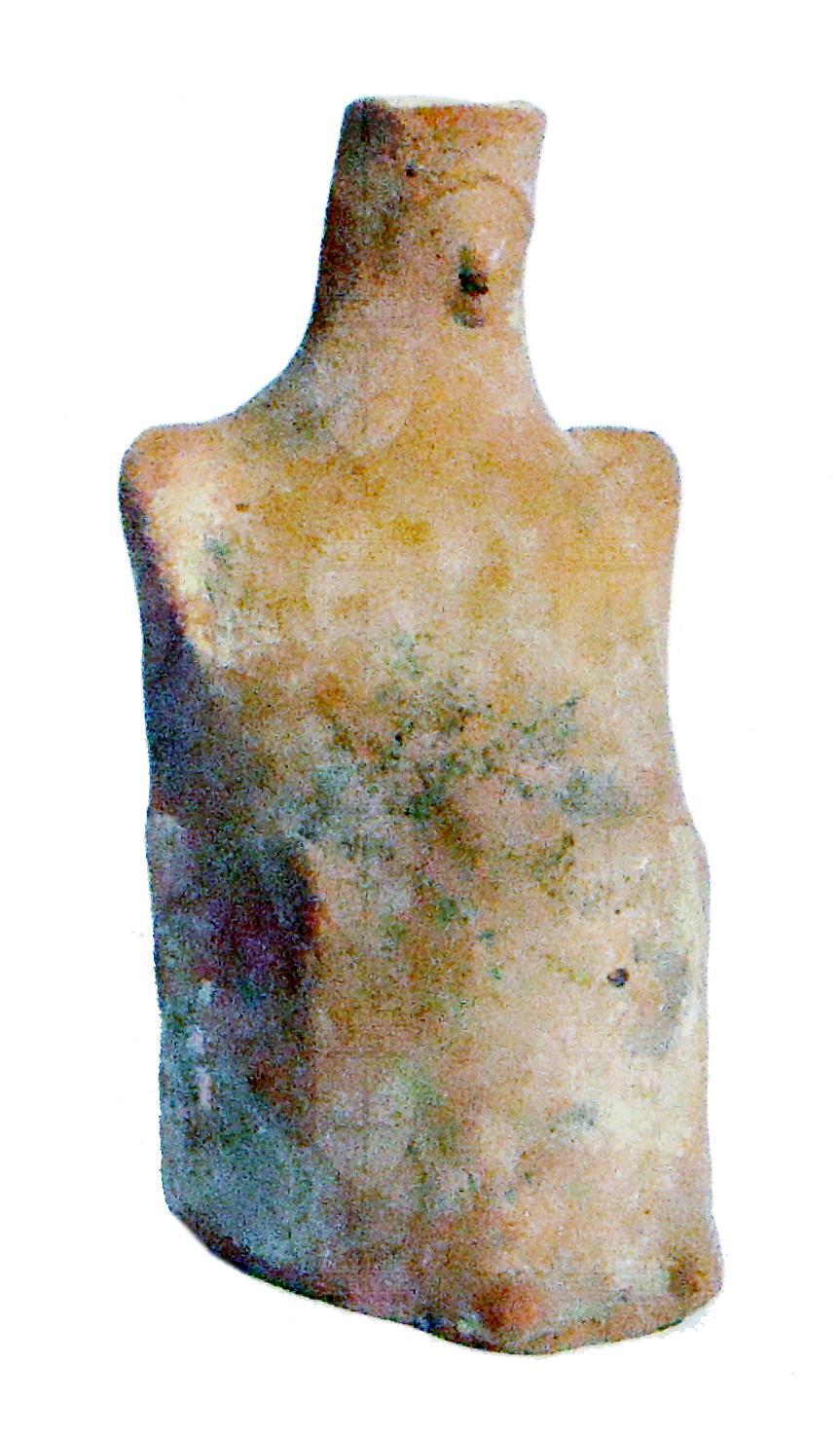 Figurina in terracotta, realizzata a matrice. Cava. Foro quadrangolare su retro. Apposta un'etichetta con dicitura "GRECIA 28 dec 1882". Leggibili le cifre in rosso "662" e "5116". In matita, all'interno, è ripetuto il numero "5116". Figurina femminile, seduta su trono con alto schienale. Appena abbozzati piedi e mani che sembrano appoggiate sulle ginocchia. Porta un polos.