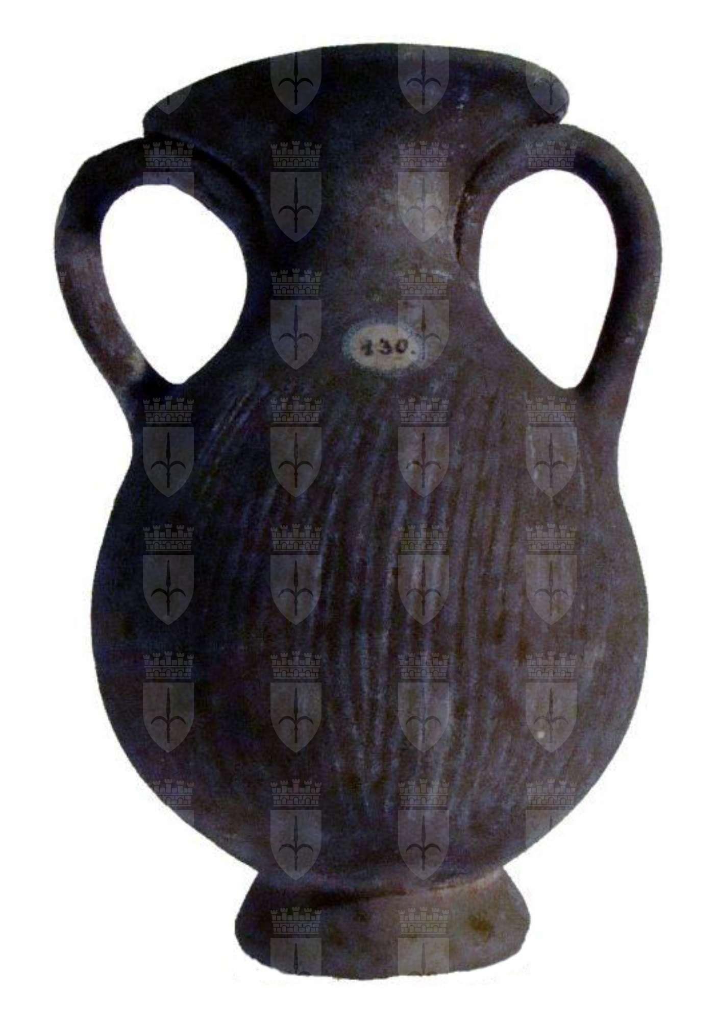 Pelike a corpo baccellato su piede a vernice bruna priva di sovraddipinture, risparmiata la parte inferiore