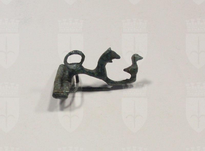 Fibula ad arco configurato a felino con anatrella all'estremità della staffa.