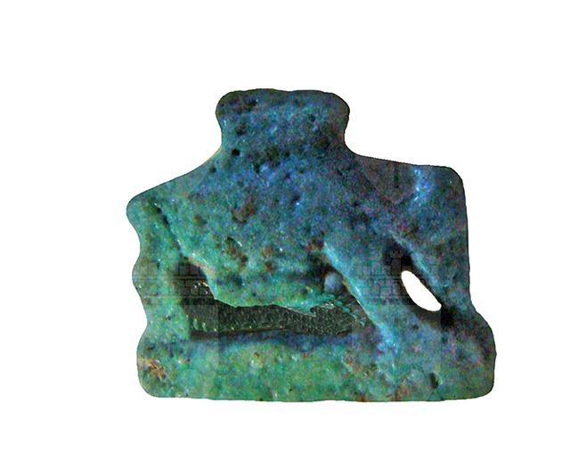 Amuleto in faience lavorato a tutto tondo, raffigurante una scrofa stante su una piccola base, con le mammelle in evidenza e con presa sulla schiena; nonostante la minutezza dell'oggetto, la resa è abbastanza precisa.