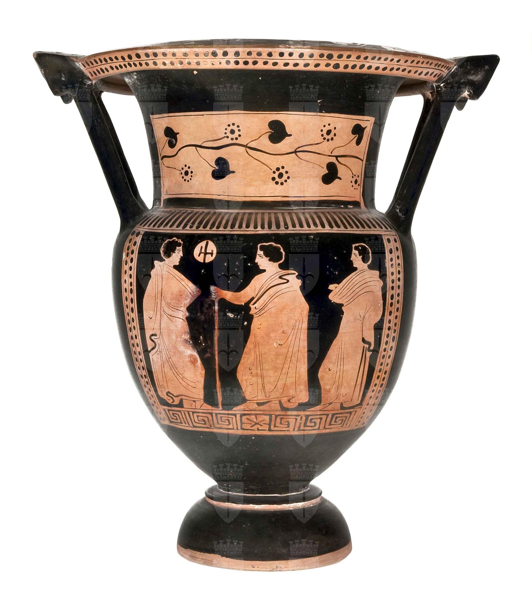 Il cratere è stato attribuito da Trendall al Pittore di Atene 1714 della scuola del Pittore di Tarporleiy.