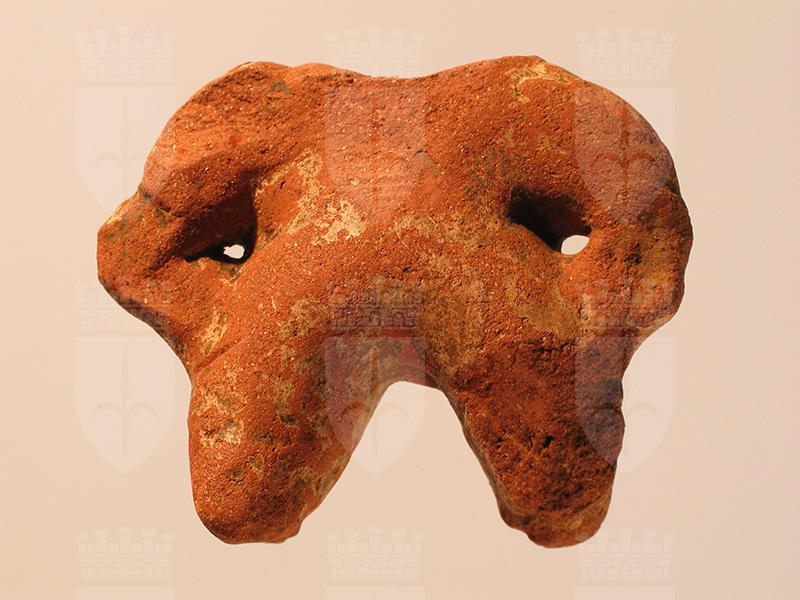 Figurina fittile acefala modellata in terracotta rossa, di stile Usulután. Rappresenta una figura umana in piedi resa in modo schematico. Gli arti appaiono corti e tozzi. Le mani sono unite ai fianchi. Le gambe terminano con due protuberanze biconiche che fungono da appoggi. Sulla superficie si notano tracce di pittura bianca e zone annerite. È probabile che la testa fosse stata asportata prima della fase di cottura.