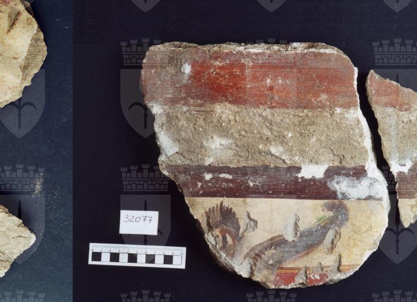 Frammenti di intonaco dipinto a fasce e figura di sfinge da Trieste via Bramante
