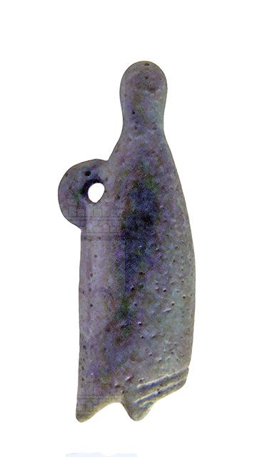 Amuleto in faience lavorato a tutto tondo, con anello di sospensione nella parte posteriore. Raffigura la corona bianca dell'Alto Egitto, simbolo di autorità nell'oltretomba (come quella che il faraone aveva in vita).