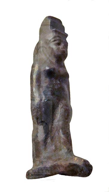 Amuleto in lapislazzulo che raffigura Iside, in piedi, nell'atto di camminare (ha la gamba sinistra in avanti). Sul capo porta il geroglifico del suo nome, sopra la gonfia parrucca che ricade sulle spalle. Le braccia sono distese lungo il corpo, e i piedi poggiano su una piccola base, che continua sulla schiena a formare il pilastro dorsale.