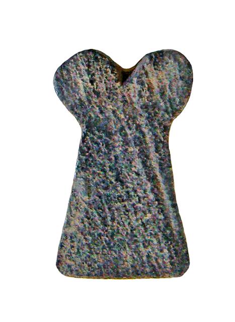Amuleto in pietra, bidimensionale, che raffigura la silhouette di una coppia di piume di struzzo disposte simmetricamente e riconoscibili per la sommità tondeggiante e rigonfia, mentre la base è insolitamente diritta. L'amuleto è privo di foro per la sospensione. La piuma di struzzo singola era l'emblema della dea Maat, garante della verità e della giustizia.