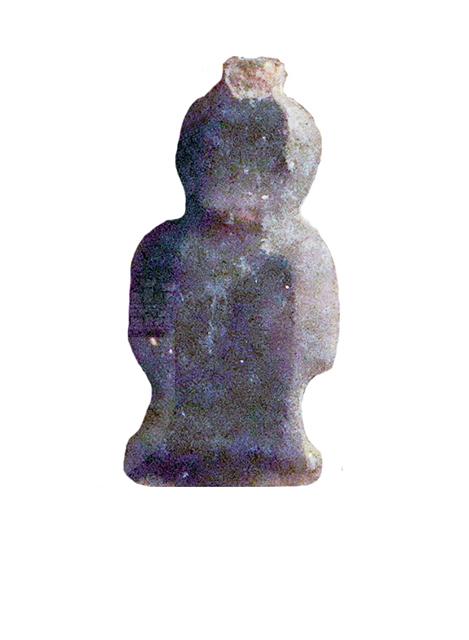 Amuleto in steatite lavorato a tutto tondo, con presa superiore forata, che raffigura la silouhette del nodo Tit, simbolo della dea Iside. Raffigura un panno piegato e annodato in maniera particolare; tale amuleto, di colore generalmente rosso, doveva proteggere i defunti e quindi veniva messo al collo delle mummie il giorno dei funerali.