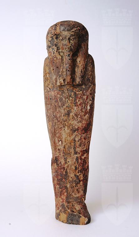 Della statua di Ptah-Sokar-Osiride rimane solo la grande figura mummiforme completamente avvolta nelle bende, con retro piatto. Emerge il volto dominato dalla parrucca, che ricadono in tre bande (due sul petto e una dietro le spalle). Sopra il capo si conserva parte del perno per l’applicazione della corona, che doveva essere anch’essa lignea, formata da due piume di struzzo con disco solare, poste su corna d’ariete orizzontali ondulate a manubrio, ora purtroppo perduta. Tutta la superficie doveva essere in origine decorata a vivaci colori, purtroppo andati perduti. Tali simulacri rappresentano il defunto, identificato nella divinità sincretica derivata dall’associazione di Ptah, Sokar e Osiride ed erano destinati a garantire la rinascita dopo la morte. Il museo conserva anche un altro esemplare di queste statue (inv. 39239), purtroppo molto rovinato.
