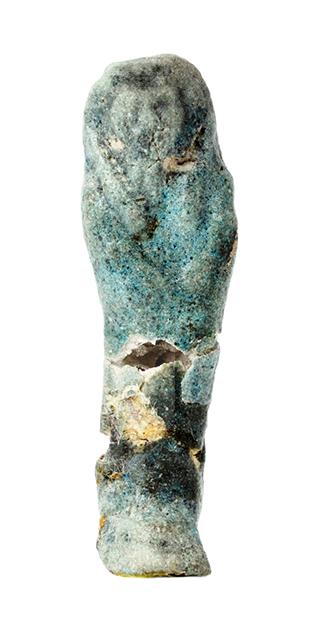 Statuina funeraria mummiforme, di piccole dimensioni (con possibile funzione di amuleto). La parrucca è tripartita, le mani sono incrociate sul petto, affiancate. Non è possibile distinguere altri dettagli, salvo che l'ushabti è anepigrafe.