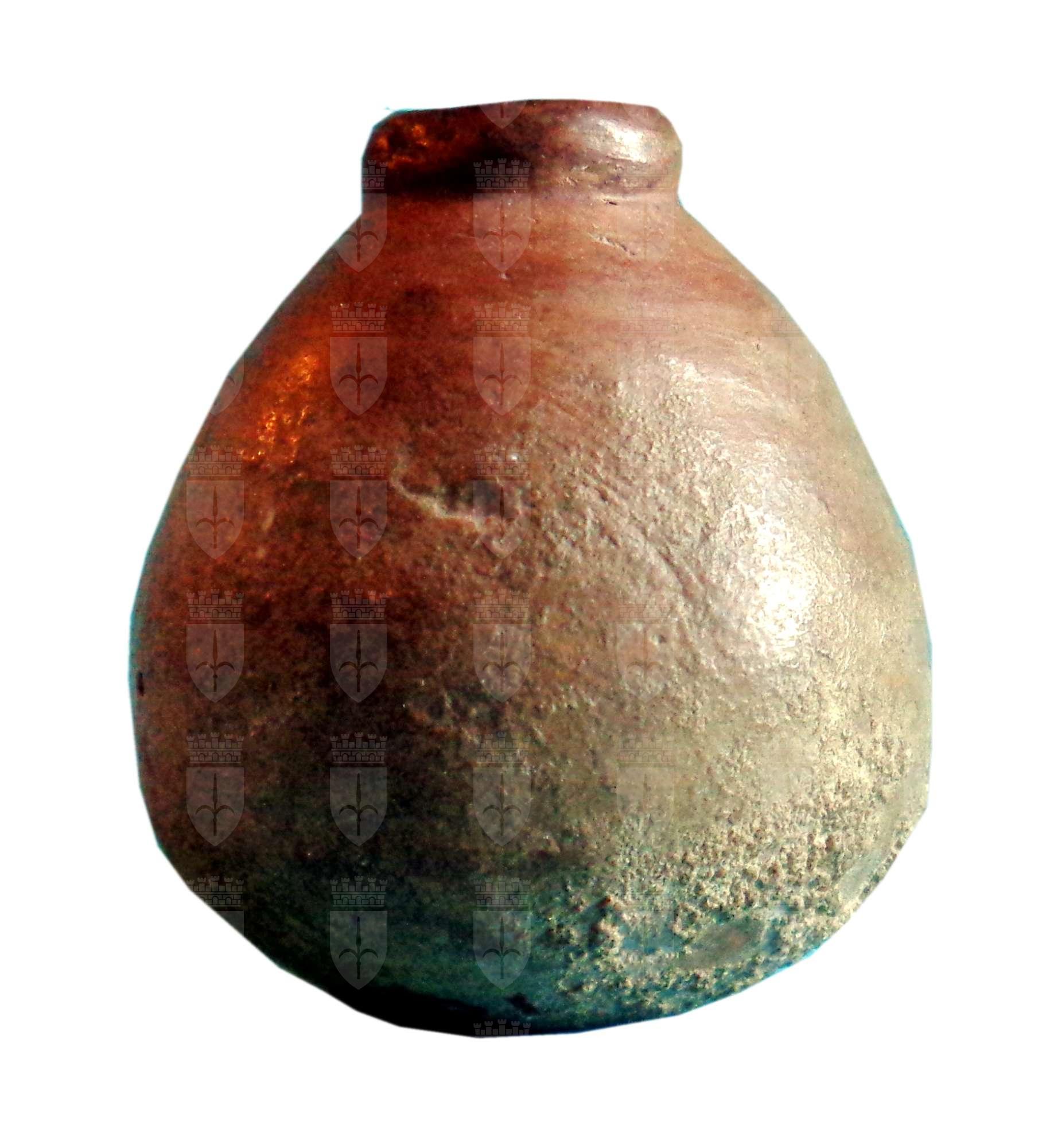 Aryballos a corpo piriforme, senza piede e con piccolo collo verticale; vernice bruna.