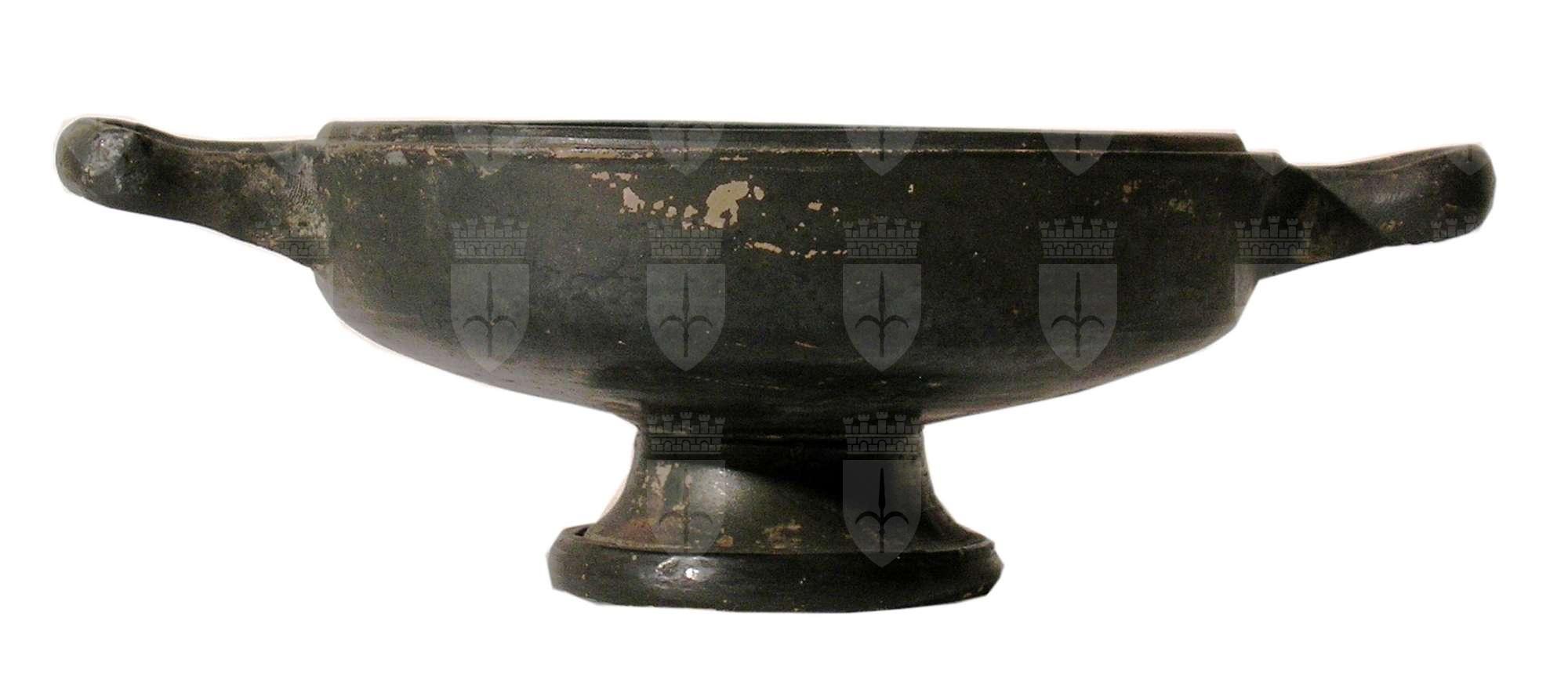 Coppa di lekanis apula a vernice nera priva del coperchio; ora sormontata dal coperchio 7619.