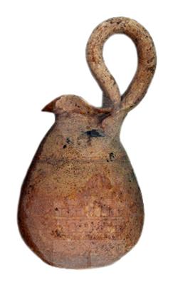 Olpe miniaturistica a corpo piriforme, privo di collo con bocca trilobata e ansa ad orecchio sopraelevata; tracce di vernice bruna.