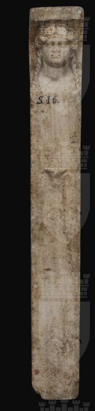Erma di Dioniso: nello stesso blocco di marmo del pilastrino è ricavato il tozzo busto e la testa del dio, ma il pilastrino continua sul retro fino al sommo del capo dove lo copre con un’alta sporgenza. Ai lati sono, all’altezza delle spalle, gli incastri rettangolari. Sul lato frontale a rilievo sono gli organi genitali. Il volto schiacciato di forma rotonda, ora molto deteriorato, è ornato dai capelli ondulati, divisi nel mezzo e ricadenti in due lunghi boccoli sulle spalle. Una breve tenia cinge la fronte e foglie d’edera adornano la chioma. Copia romana di un tipo del IV secolo a.C.
