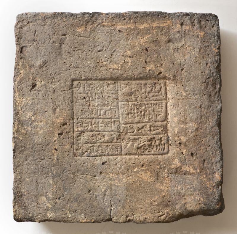 I mattoni in argilla sono ascrivibili a Gudea, re di Lagaš, della fine del III millennio a.C., e sono molto probabilmente riferibili all’Eninnu, il tempio di Ningirsu edificato da Gudea a Girsu (l’odierna Tello in Iraq). Su entrambi i mattoni è riportata copia della medesima iscrizione di fondazione che celebra i lavori di costruzione e ristrutturazione del tempio a opera del sovrano della città. Si tratta dell’impresa edilizia più nota e celebrata di Gudea che fu molto attivo come costruttore. Questa versione dell’iscrizione è la più diffusa: sono noti altri 33 esemplari su mattoni, oltre a numerose copie su altro supporto come coni d’argilla, perni di porta, tavolette di pietra e diorite, e blocchi di calcare. Sono attualmente noti 1173 esemplari dell’iscrizione.
