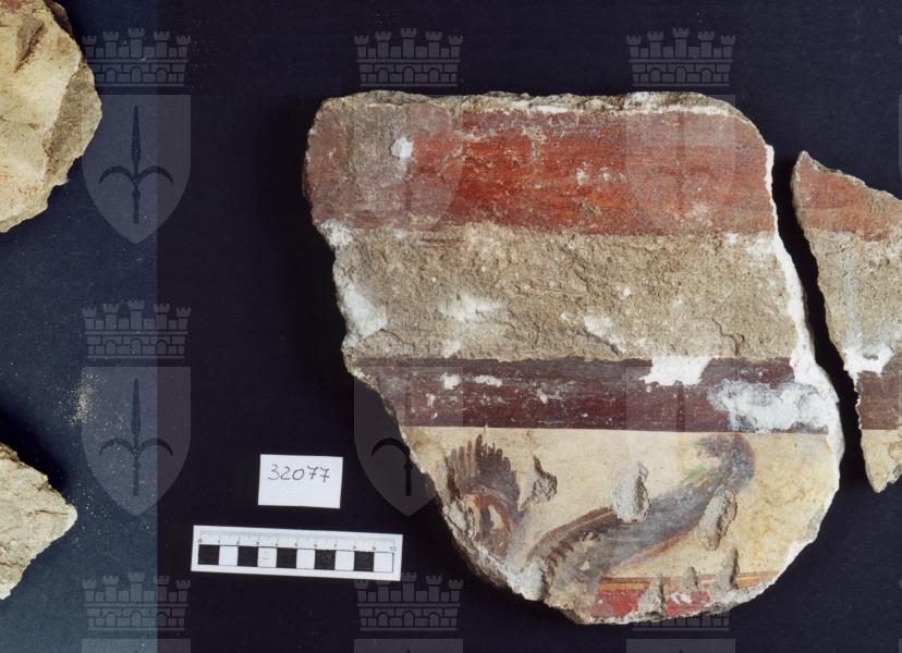 Frammenti di intonaco dipinto a fasce e figura di sfinge da Trieste via Bramante