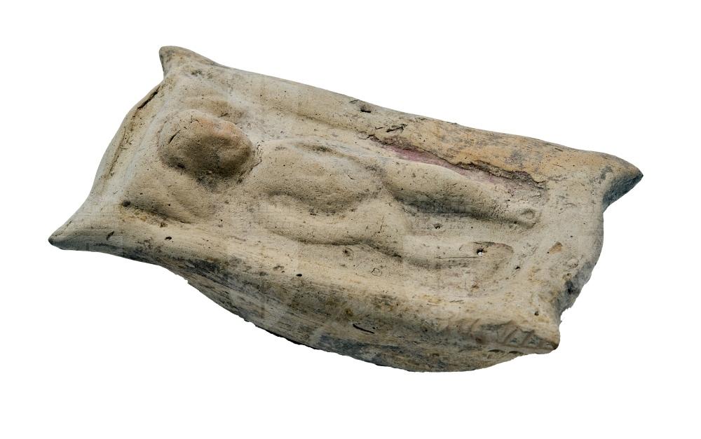 Figura cava in cui ruota un nucleo. Raffigura una culla a forma di mangiatoia in cui è adagiata la figura di un neonato nudo disteso sulla schiena, con la gamba destra leggermente flessa; la testa poggia su un cuscino. La parte superiore è realizzata a stampo mentre quella inferiore è modellata a mano e presenta un piccolo foro di sfiato. Rimangono residui di rivestimento bianco e di colore.
