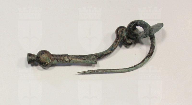 Fibula serpeggiante con occhiello e arco a fettuccia.