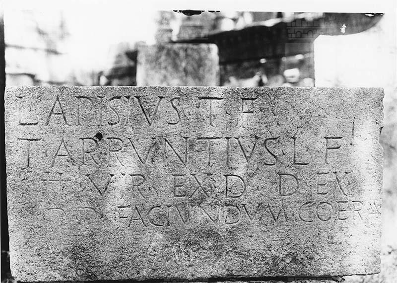L'iscrizione latina riporta i nomi dei duoviri (Lucio Apisio e Tito Arruntio ) che, per decreto dei decurioni, curarono con i soldi della comunità la costruzione del sacello della Bona Dea.