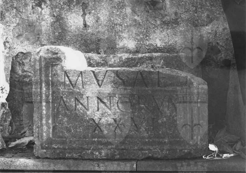 Urna rettangolare con fronte incorniciata e iscrizione a Musa, morta all'età di ventisei anni.