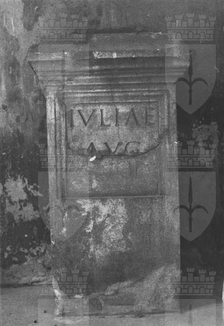 Basamento mutilo della parte inferiore rinvenuto presso la Cattedrale di San Giusto; Conservato presso l' Orto Lapidario, IV ripiano, riside ora nel Lapidario Tergestino, Castello di San Giusto.