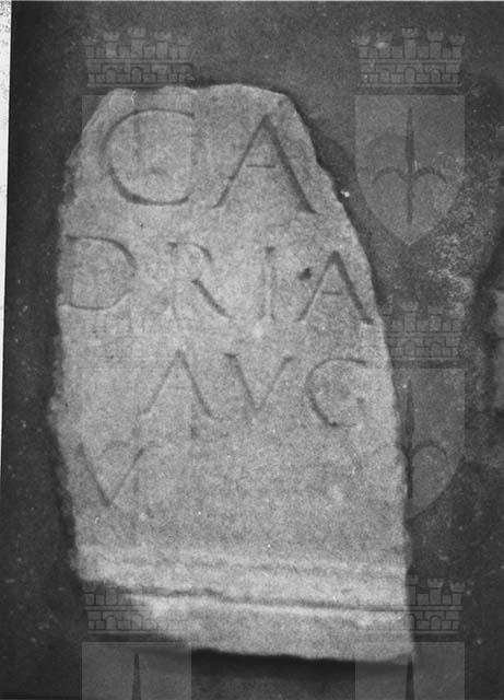 Il frammento riporta la dedica onoraria di o per Adriano.