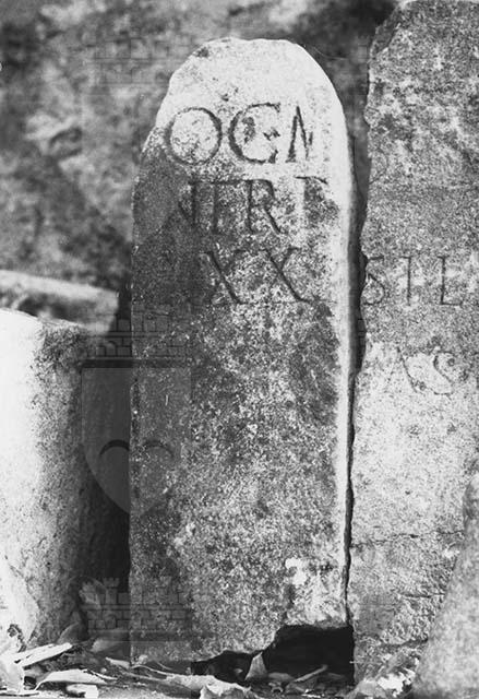 Stele centinata scorniciata la cui iscrizione latina contiene le indicazioni delle misure dello spazio destinato al sepolcro.