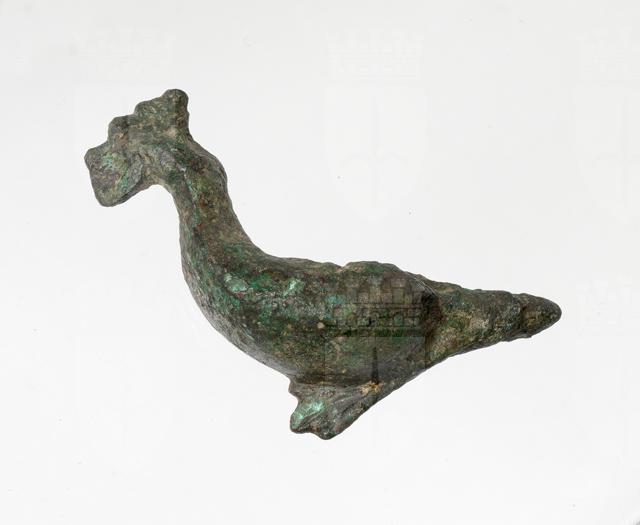 Pezzo decorativo d'applicazione, raffigurante un delfino.