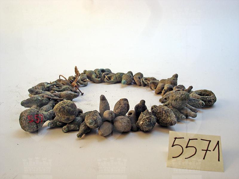 54 pesi per rete da pesca. Per lo più fusiformi, uno ad anello, altro a palla; tutti con appendice forata o con anello di sospensione.