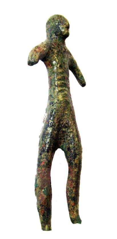 Figurina di uomo schematica e allungata, tratti fisionomici sommari, di tipo veneto.