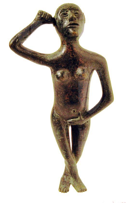 Figurina di donna nuda, in atteggiamento di Venere pudica. Testa ovale, leggermente sollevata. Il corpo è disarticolato e sproporzionato. Dato per falso.