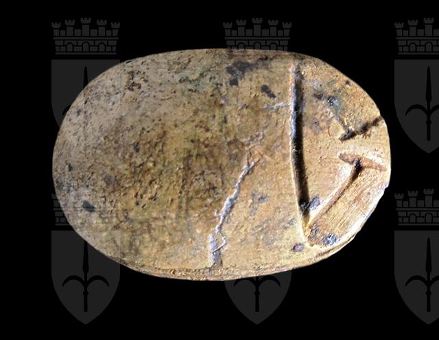 Scarabeo in steatite marrone, con sul ventre incisione che rappresenta leone andante. Dorso molto stilizzato, incisione soltanto del semplice clipeo. Foro passante longitudinale.