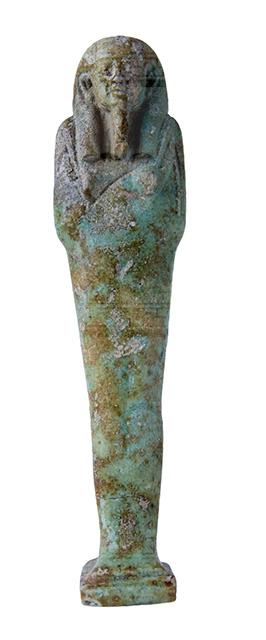 Statuina funeraria mummiforme che indossa una parrucca tripartita e la barba divina. Le mani sono incrociate, la destra sopra la sinistra, e tengono rispettivamente una zappa e un piccone. Dalla spalla sinistra pende una sacca. Il pilastro dorsale è presente, assieme ad una piccola base. La colonna di iscrizione si trova sul pilastro dorsale.