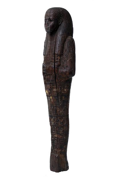 Statuina funeraria mummiforme, di cui purtroppo mancano tutta la parte destra e i piedi, è di finissima fattura ed i dettagli sono resi con molta precisione. Indossa una parrucca tripartita striata ed un collare, alla cui estremità si riconosce il fermaglio a testa di falco. Le braccia sono incrociate, la destra sopra la sinistra; la mano sinistra tiene un ged. L’iscrizione, ben leggibile nella porzione conservata, si sviluppa su sette righe attorno alle gambe, che riportano il capitolo 6 del Libro dei Morti e il nome e i titoli del defunto.