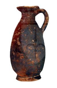 Olpe miniaturistica con corpo allungato e leggermente espanso con base piana e ansa verticale; vernice nera parzialmente abrasa, decorazione a filetti paralleli concentrici.