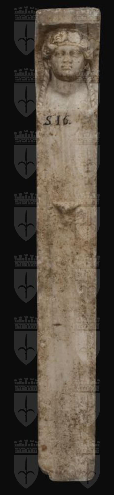 Erma di Dioniso: nello stesso blocco di marmo del pilastrino è ricavato il tozzo busto e la testa del dio, ma il pilastrino continua sul retro fino al sommo del capo dove lo copre con un’alta sporgenza. Ai lati sono, all’altezza delle spalle, gli incastri rettangolari. Sul lato frontale a rilievo sono gli organi genitali. Il volto schiacciato di forma rotonda, ora molto deteriorato, è ornato dai capelli ondulati, divisi nel mezzo e ricadenti in due lunghi boccoli sulle spalle. Una breve tenia cinge la fronte e foglie d’edera adornano la chioma. Copia romana di un tipo del IV secolo a.C.