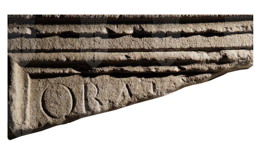 Dado parallelepipedo liscio con fronte incorniciata e iscritta e coronamento modanato. Ara frammentaria con iscrizione latina onoraria in lingua latina di un membro dell'ordine equestre, Q. Baienus Bassianus
